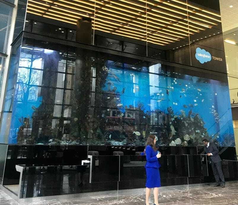 However, the building is what I want to talk about. They had a fish tank in reception. Not just any fish tank. This thing is truly massive. Anyway, I was impressed. And the view from the 35th floor wasn’t bad either.